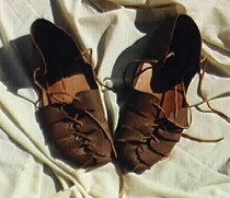 Gillies (shoes)We now offer Highland shoes for sale. These are an early style gillie that laces up the top of the shoe, attaching it to your foot. The shoe is crafted from 5-7 oz. oil tanned leather (this depends on the leather lot we receive). An 8-9 oz. leather insole is included to make the shoe more comfortable to walk in. Leather laces are included. When ordering this shoe please send an outline of your largest foot. All seams are hand sewn. This style of shoe was used back to Roman times. $54.