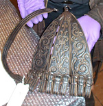 This hanger is based on the design of a hanger discovered in the wreckage of the Mary Rose off the coast of England. Our version of this hanger has brass buckles and belt ends. $145.